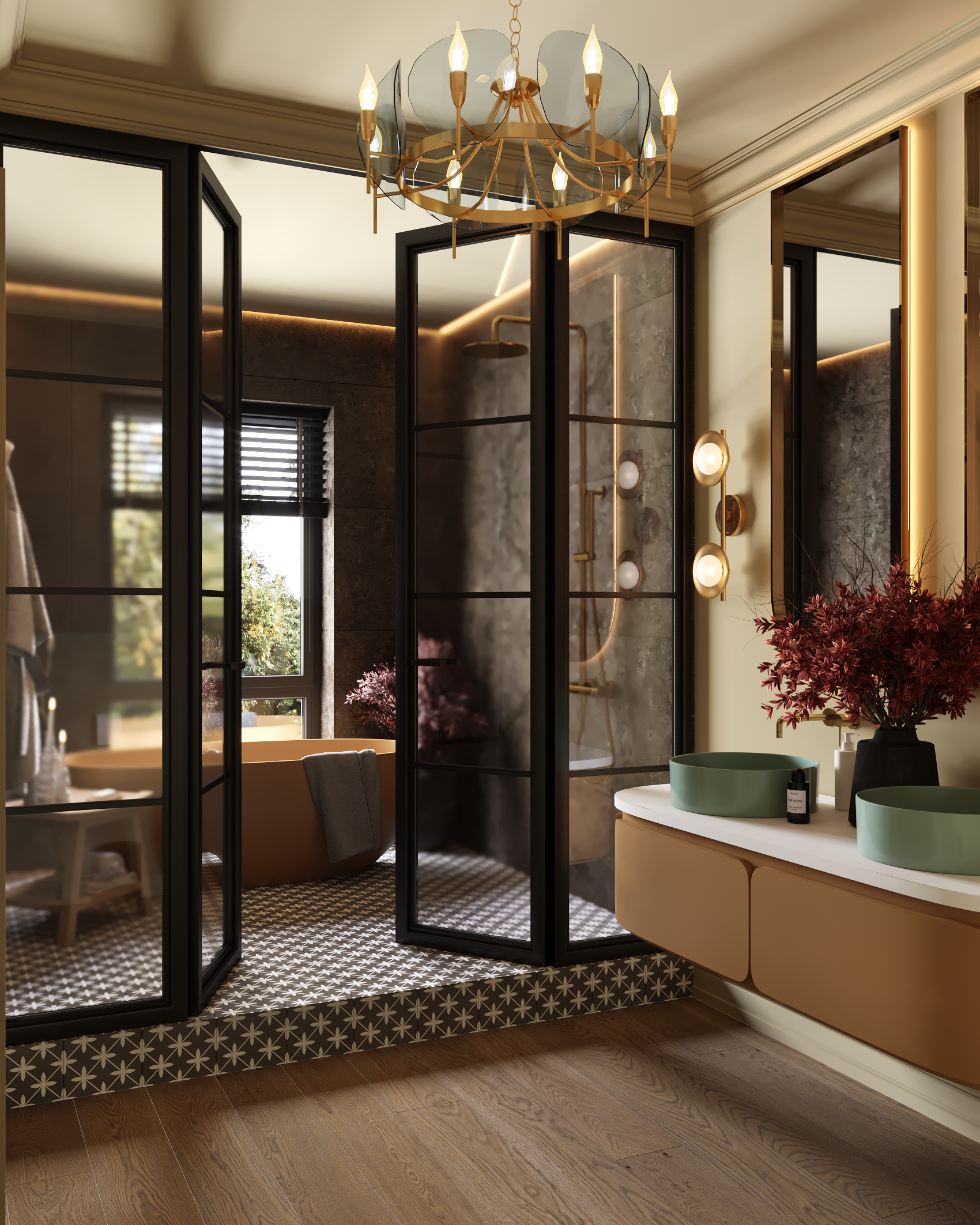 "Черноморская гармония" — это проект ванной комнаты, воплощающий сочетание южного гостеприимства и современной элегантности. В основе дизайна лежит идея создания пространства, где естественная красота черноморского побережья встречается с изысканными дизайнерскими решениями, создавая оазис спокойствия и роскоши.